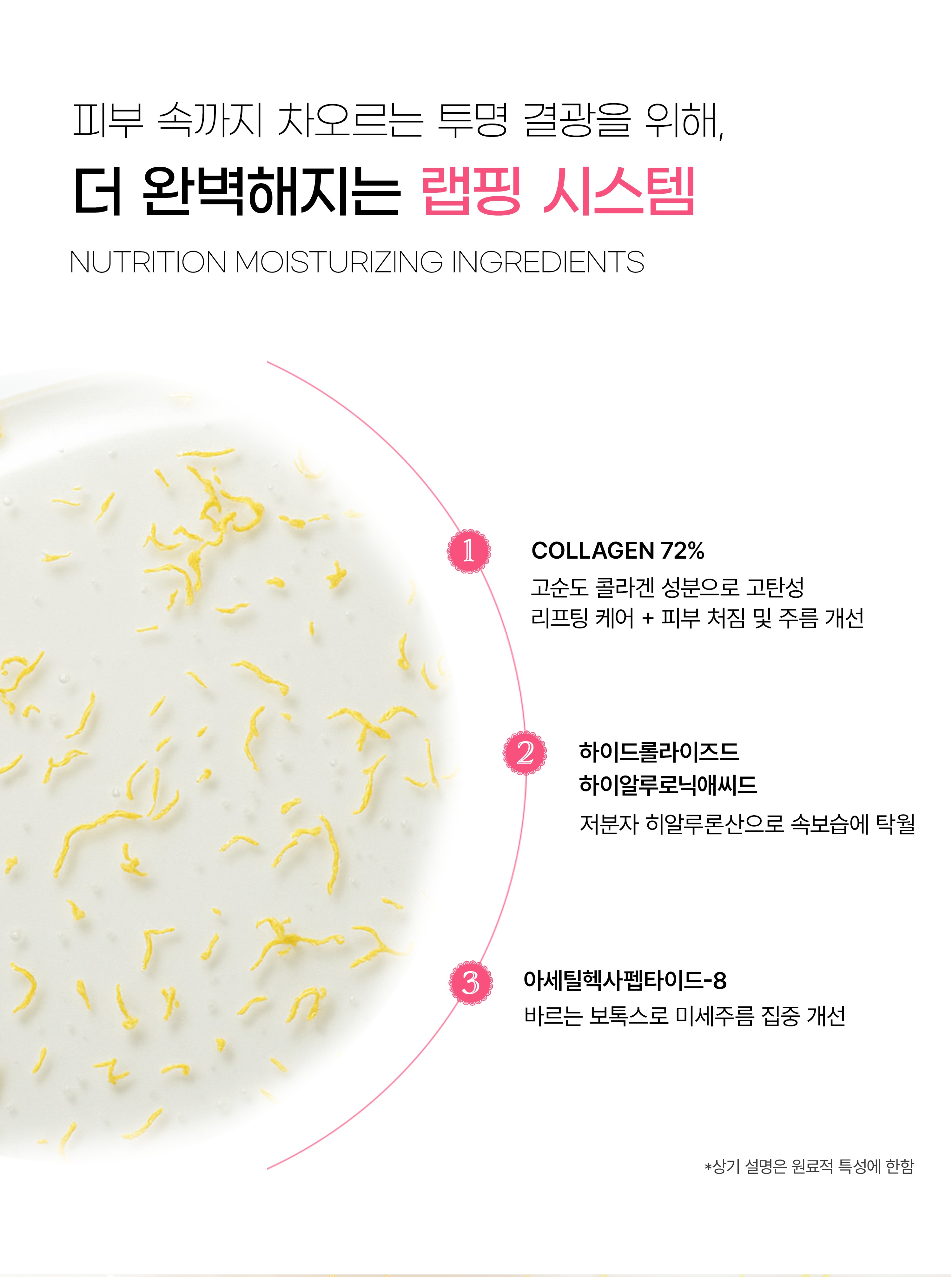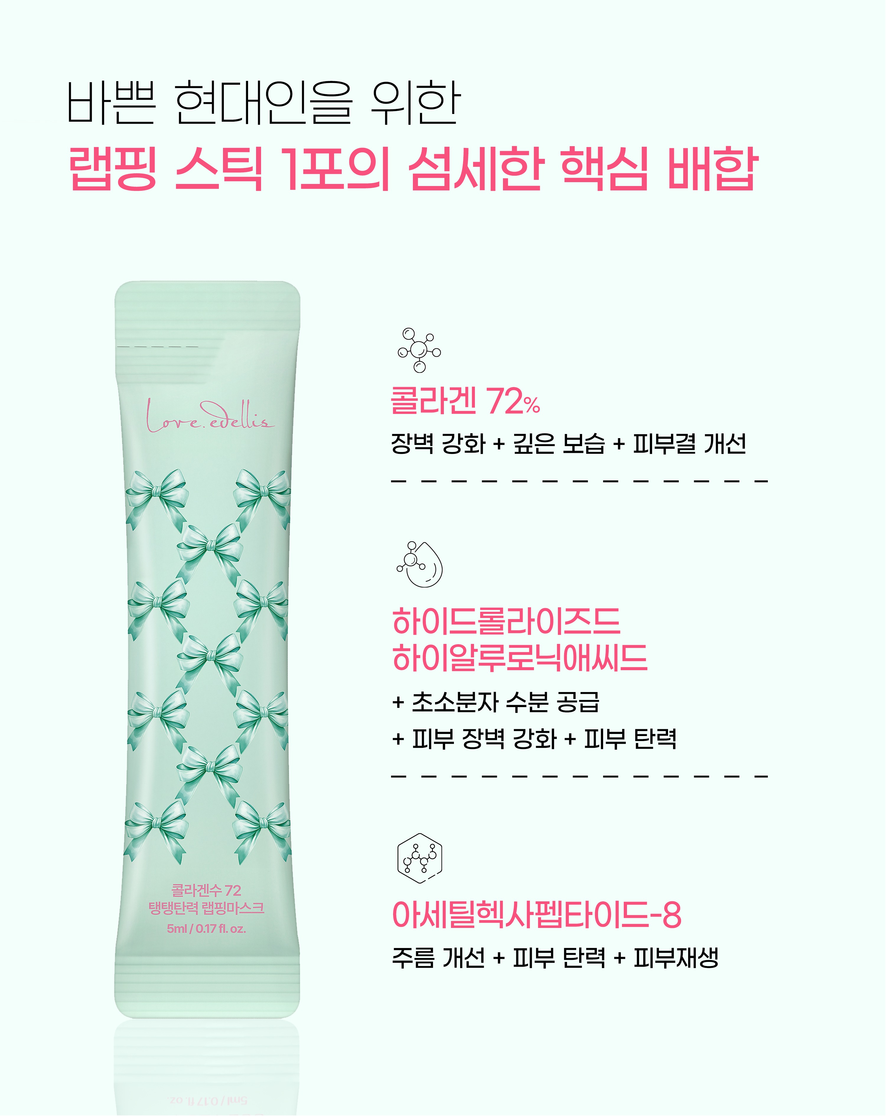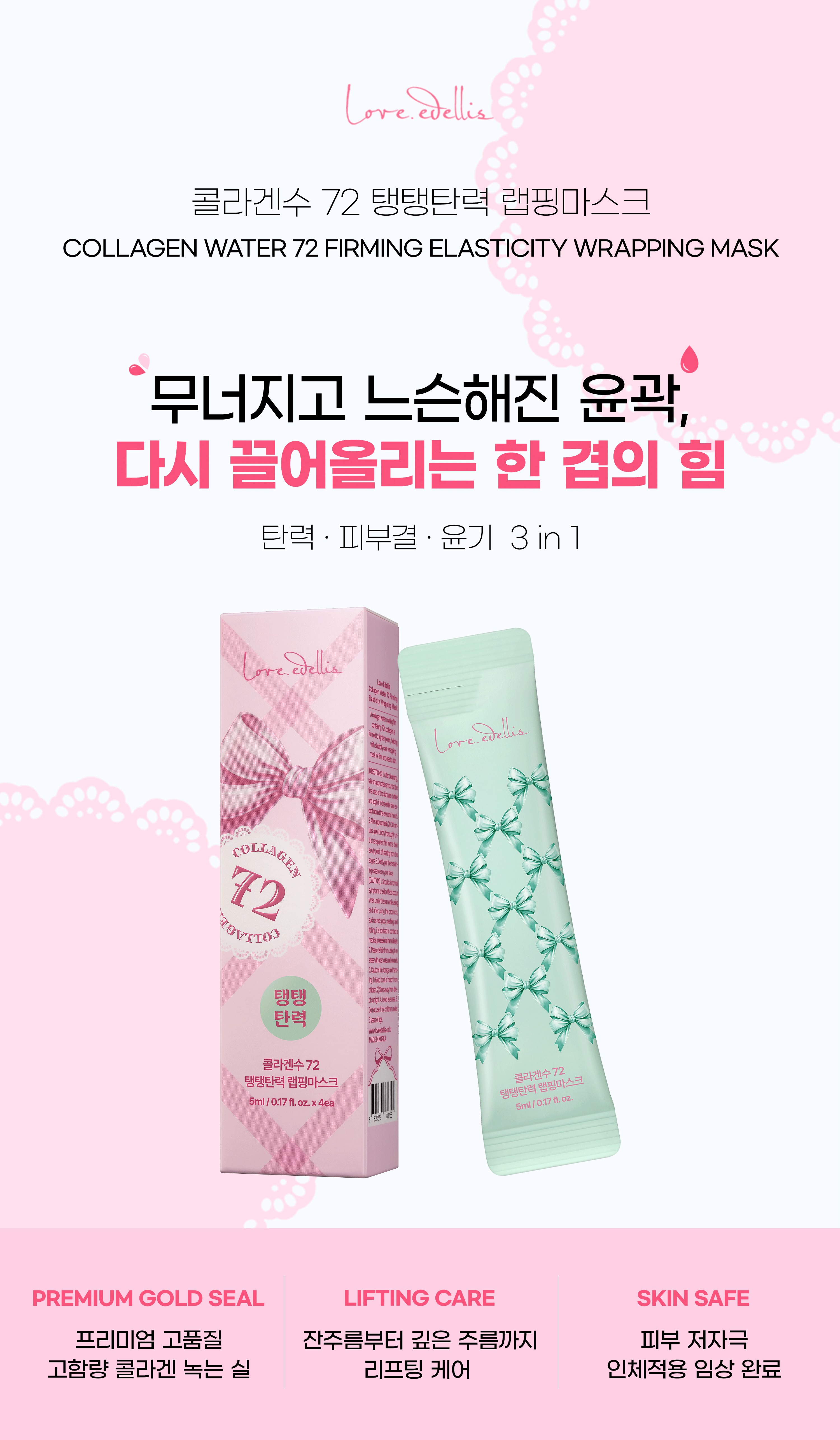 A firming wrapping mask that forms a collagen-rich coating layer with 72% collagen water, helping to improve skin elasticity for a plump, resilient, and lifted complexion.